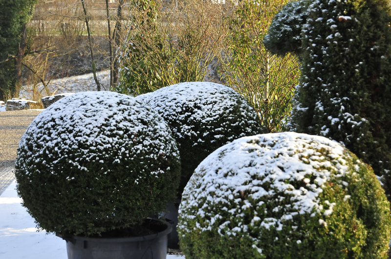 Die immergrünen Kübelpflanzen, die im Freien überwintern und auch neu gesetzte Pflanzen -vor allem wintergrüne Arten- haben auch im Winter Durst. Giessen Sie an milden Tagen mit kaltem Wasser.